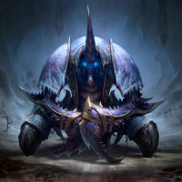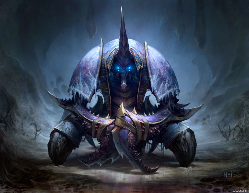 Warcraft game. This is a fantasy-themed picture featuring a humanoid figure with a demonic appearance, sitting on what appears to be a shell or some sort of