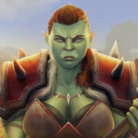 green skin and spiky hair, wearing armor that seems designed for battle, suggesting they might be a warrior or a similar combat-oriented class within the game.