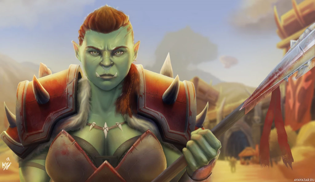 a fictional race in the game known for their strength and tendency towards warrior roles. The character is shown with