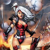 a female warrior or superhero. She has