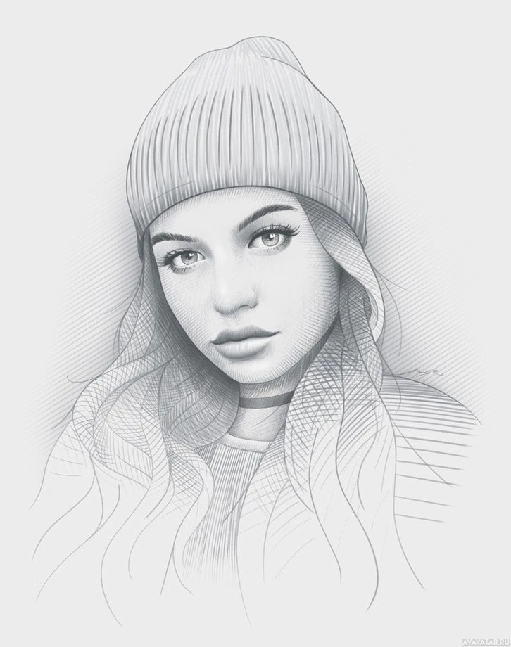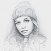 The image shows a stylized illustration of a girl wearing a beanie and jacket, with her hair styled down. She has a neutral expression on her face. This kind of artwork often falls under the category of portraiture or digital art.