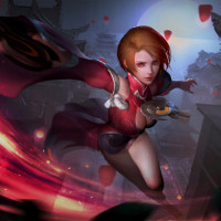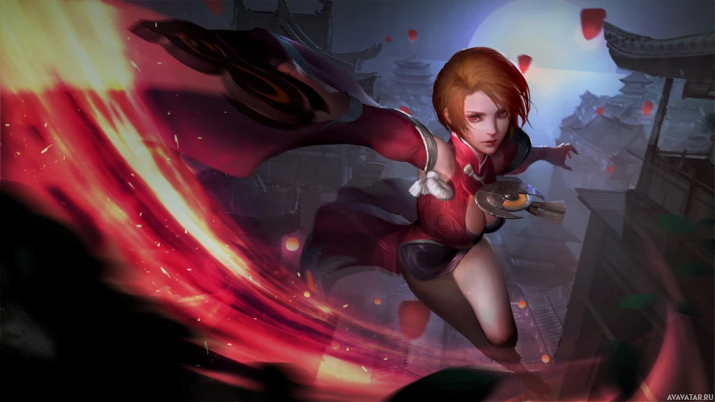 the dynamic pose and the energy-like effect around her hand. There are elements that suggest she might be using some sort of magical or elemental power. The background seems to be a stylized environment resembling a battlefield or