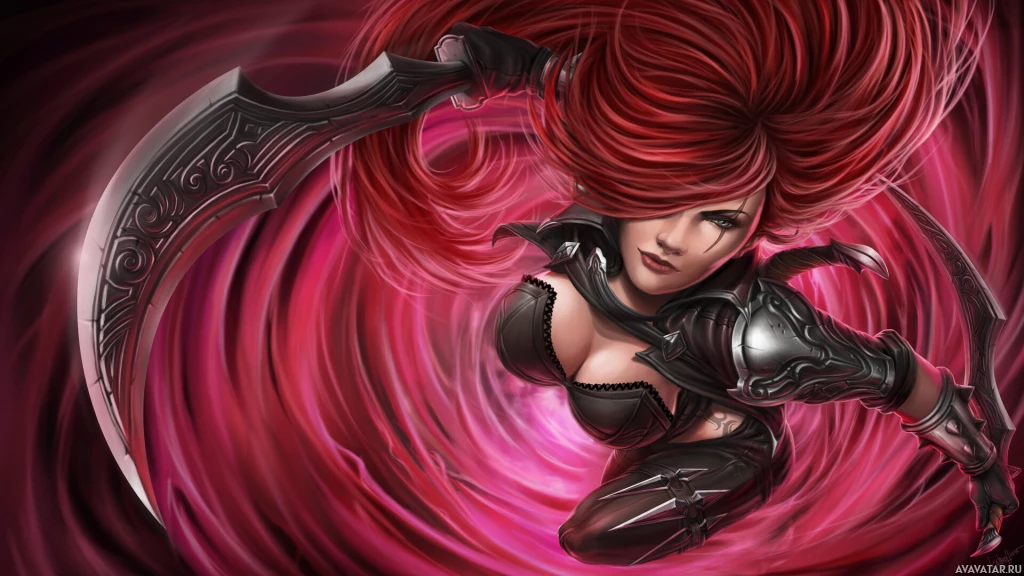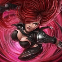 The image shows a digital artwork of a character that resembles Katarina,