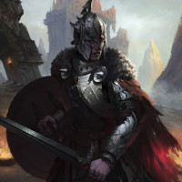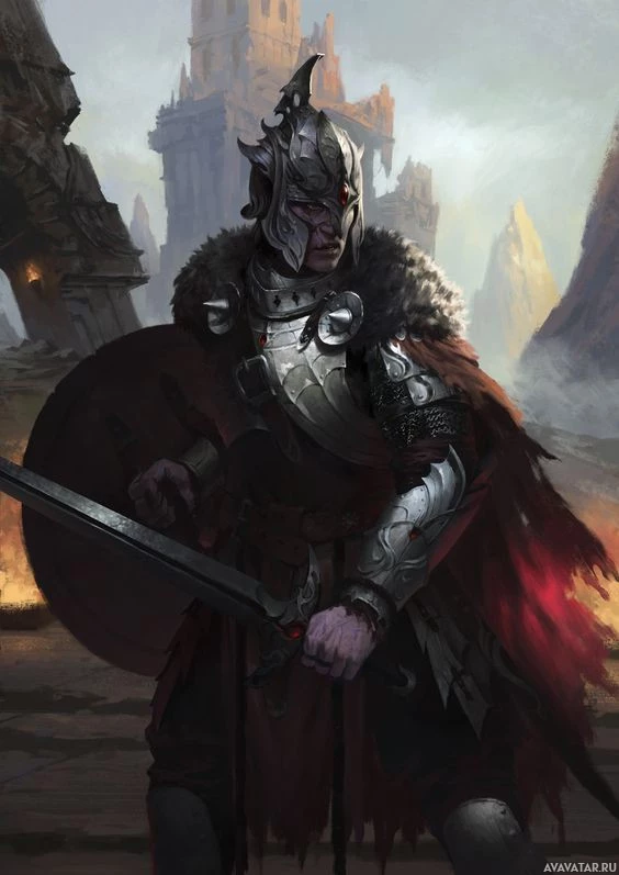 The image depicts a warrior or knight in