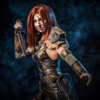 Aela the Huntress from "The Elder Scrolls" series of games. The individual is wearing armor with