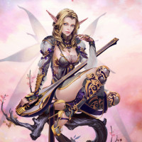 The image depicts a fantasy-themed character, likely an elf. She is equipped with a sword and has pointed ears, which are common characteristics of elves in various mythologies and