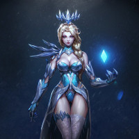 blonde hair, is wearing armor and a cloak that gives off an ethereal vibe, and she's holding an object that could be related to her abilities or status within the context of the story. The overall theme suggests a world with magical elements, possibly in a realm where magic plays