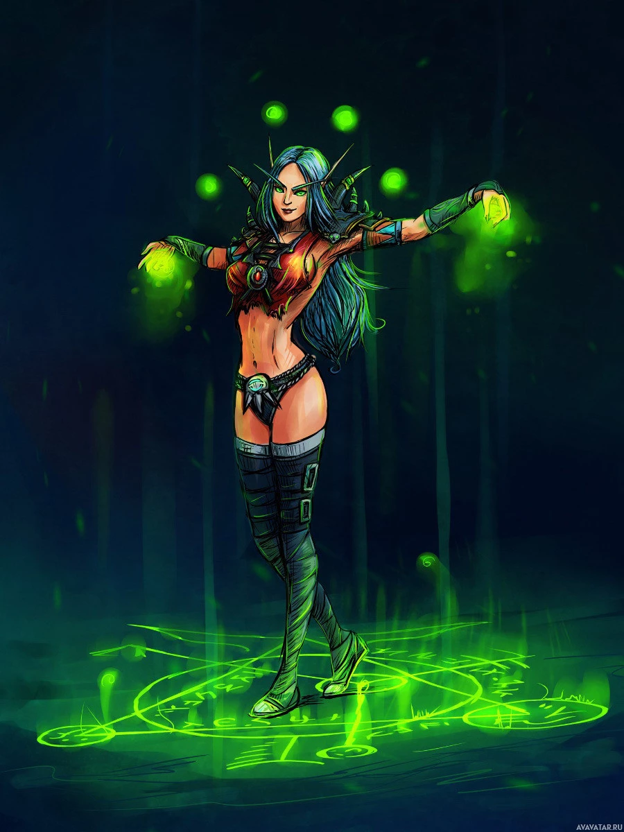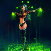 pointed ears. She is dressed in attire that suggests she might be a sorceress or magical practitioner, possibly with some influence over nature or magic, given