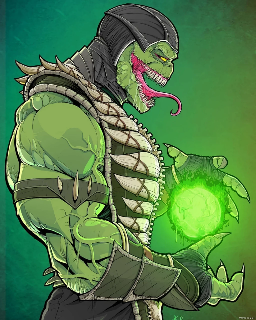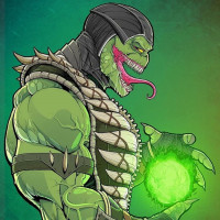 game series. Reptile is depicted with green skin,