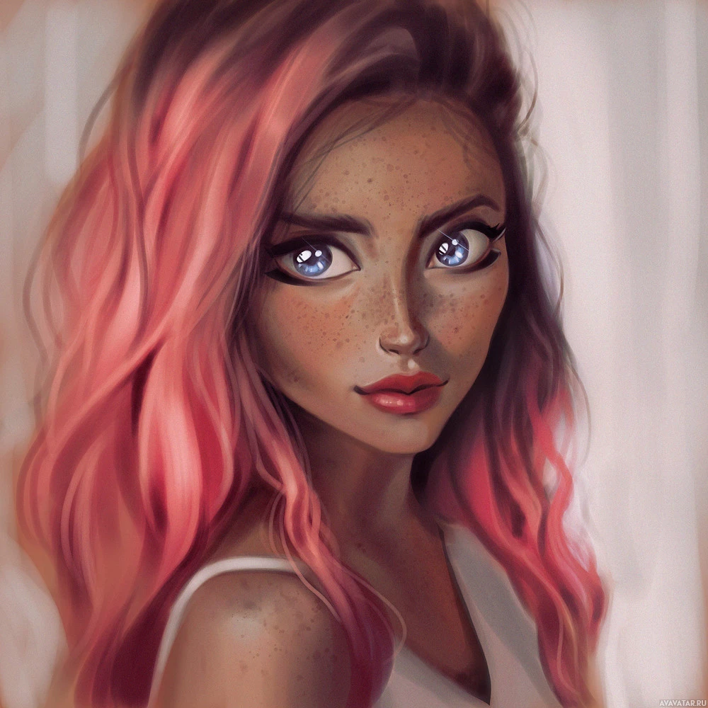 a contemplative expression on her face. The artwork is vibrant and detailed, suggesting it could be used for various purposes like