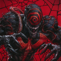 comic series, known as Venom. He is depicted with his characteristic black and red suit, which is adorned with
