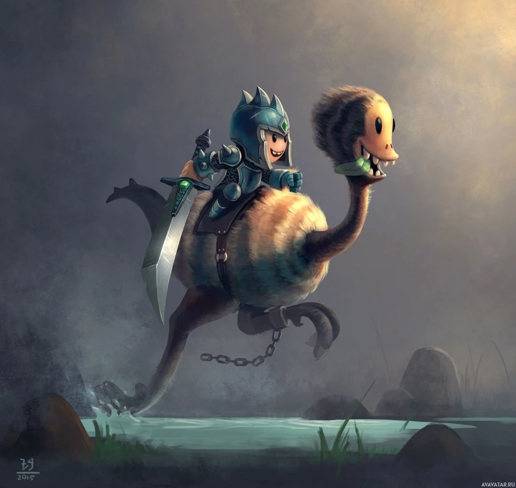 an animated scene featuring a character riding on the back of a small, anthropomorphic creature that resembles a bee or wasp. The character is wearing armor and holding a sword, suggesting they might be a warrior or knight. The setting appears to be outdoors during what could be dusk or dawn due to