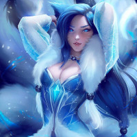 cat ears on her head and appears to be part of a fantasy or mythological creature theme. There are also elements of ice or frost around her, which suggests