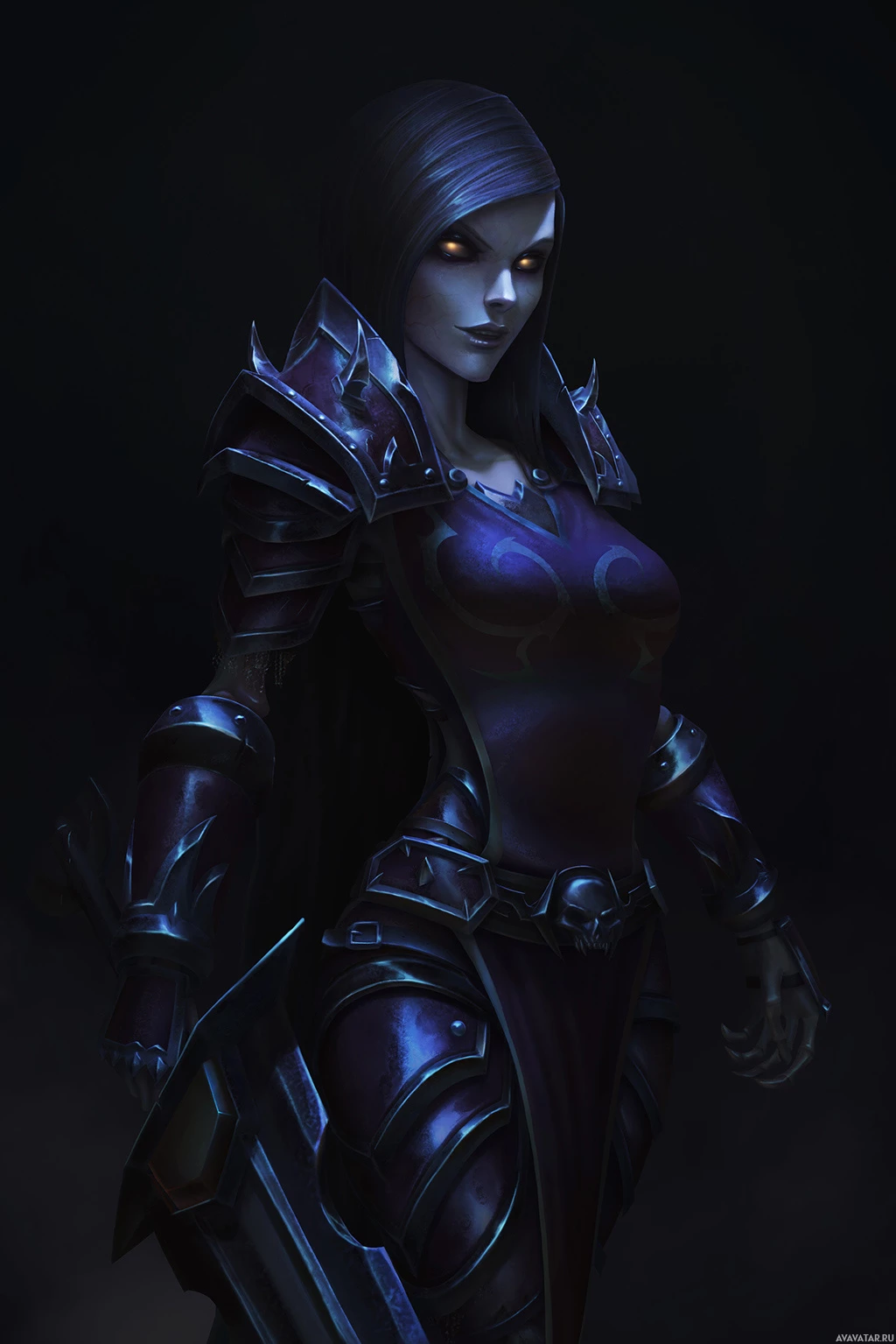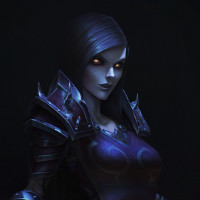 mythical beings. Her attire consists of a corset-style top and armor that appears to have