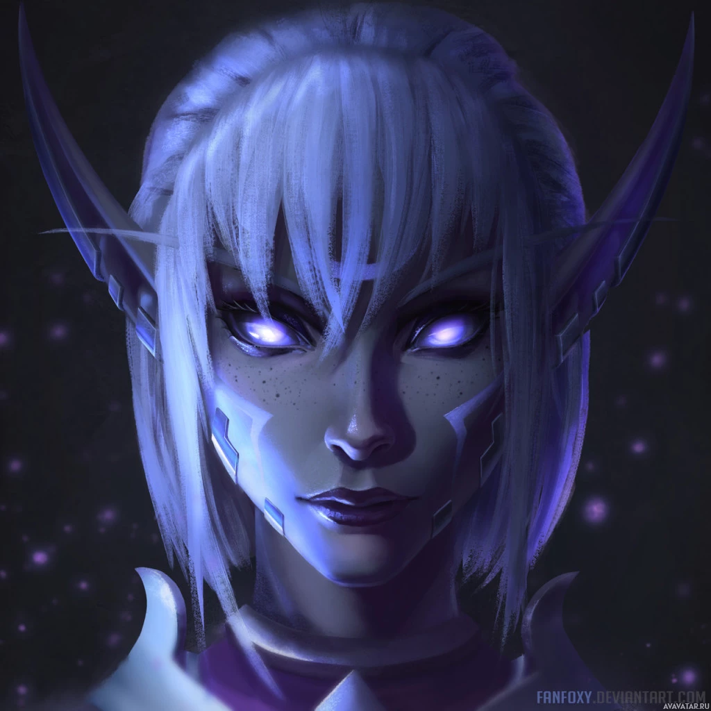 white hair and pointed ears, which are typical features of this fictional race. The character is wearing armor and has