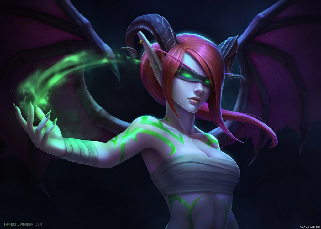the mythological figure of a succubus. The character also appears to be casting or controlling some form of energy, possibly represented by the green