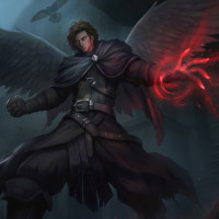На картинке изображен фантастический персонаж, который кажется ангелом. Персонаж показан с крыльями, которые являются общей чертой, связанной с ангелами в различных мифологиях и вымышленных произведениях. Персонаж имеет стилизованную внешность с несколько готической или темной эстетикой фэнтези, что указывает на то, что он может играть роль в игре или истории, которая включает в себя элементы темной фэнтези или жанров ужасов.
