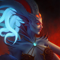 a fantasy character. The character appears to be a humanoid figure with blue skin and