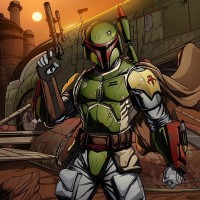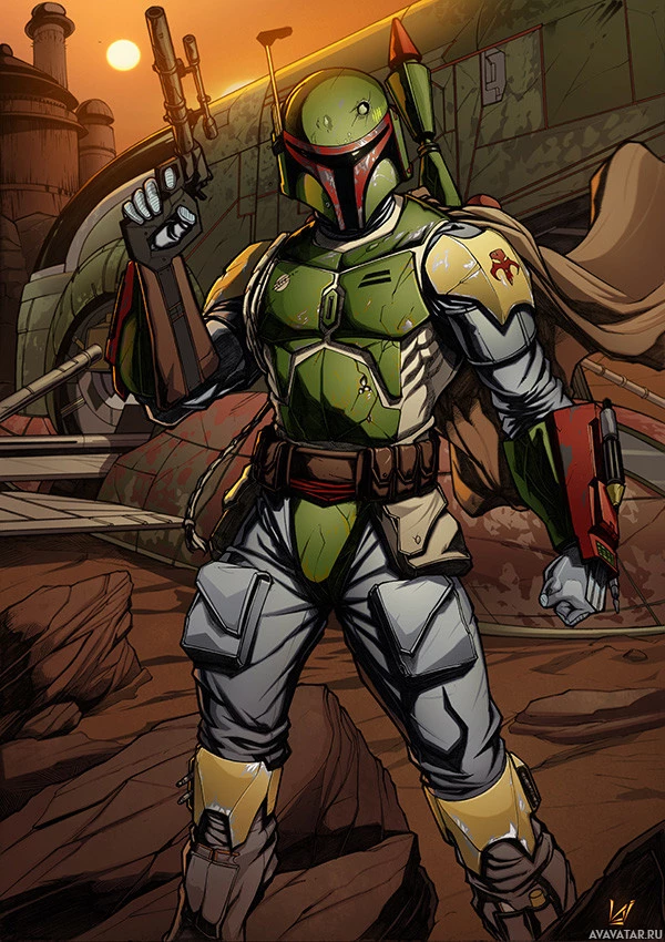 Star Wars" franchise, who is known as Boba Fett. He is wearing his