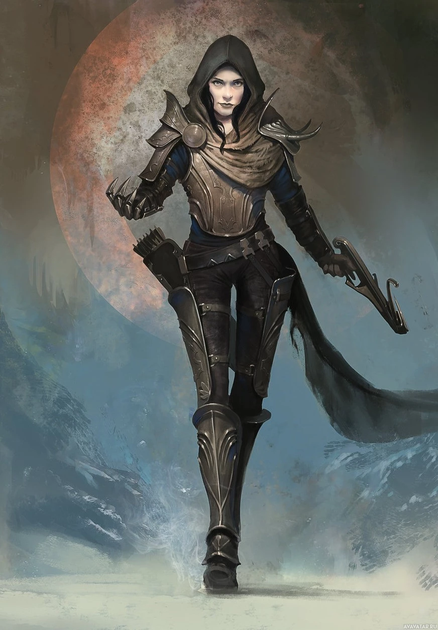 a Demon Hunter, identifiable by their distinctive armor and weaponry. The artwork showcases