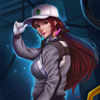 red hair wearing a futuristic outfit and holding what appears to be a weapon. She has a determined expression on her face, suggesting she is ready for action or combat. The style of the artwork is indicative of Overwatch, which is a popular team-based