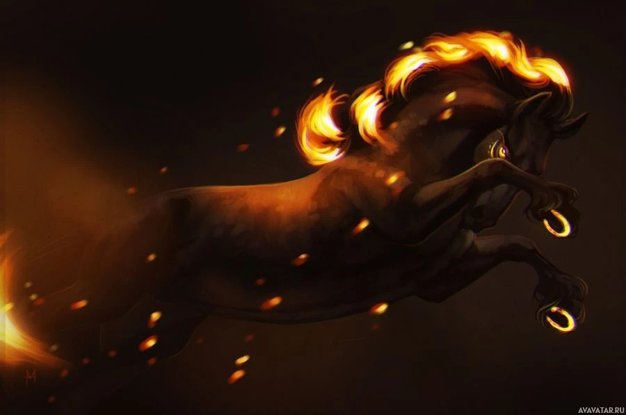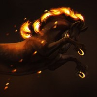 The image shows a fantasy-themed illustration of a horse. The horse has a fiery mane, suggesting it may be a creature from mythology or