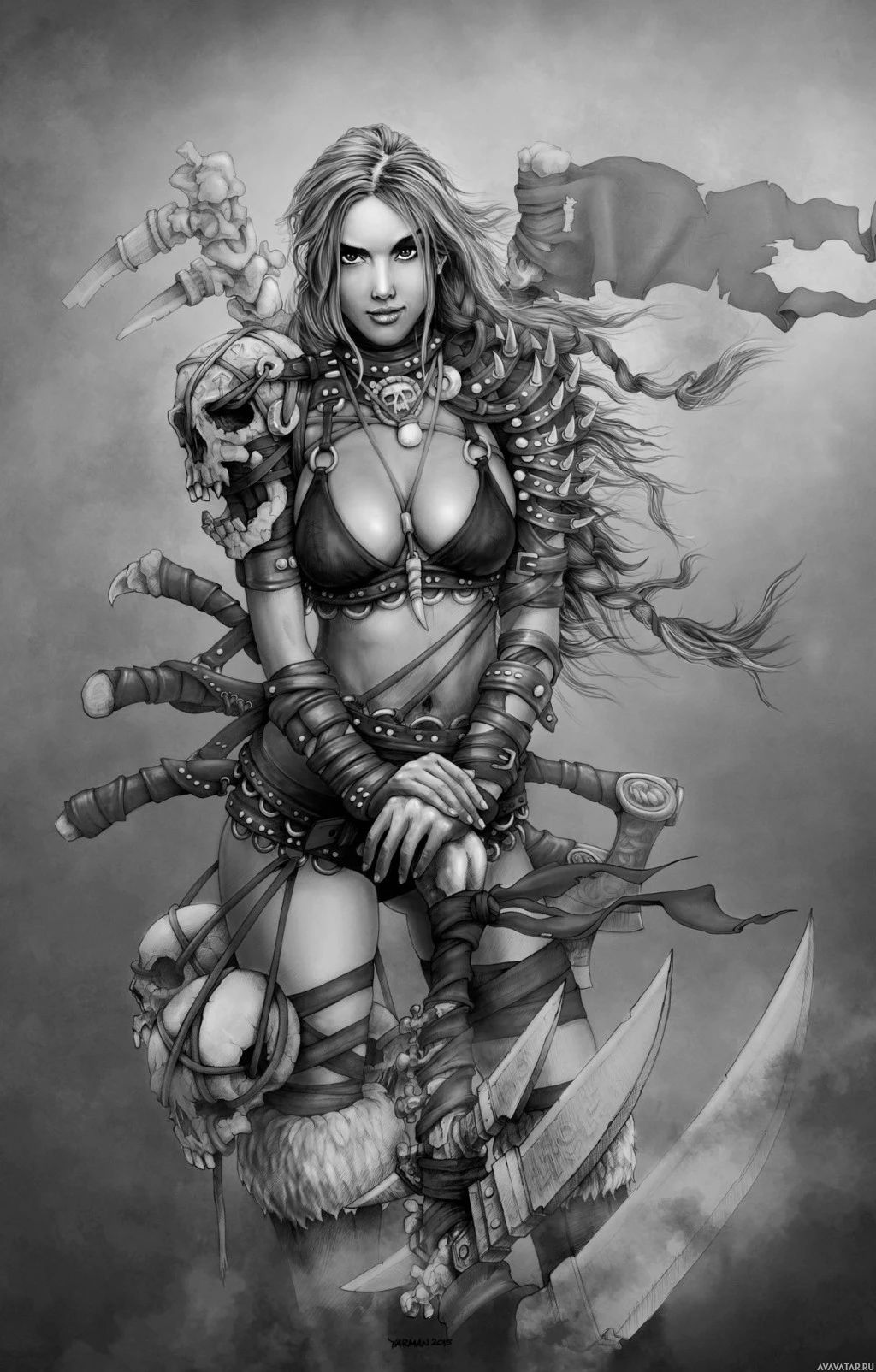 the dramatic atmosphere of the image. This character seems to embody the archetype of a warrior or fantasy heroine.