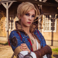 In this picture, there is a person dressed in cosplay attire inspired by the character Ves from The Witcher