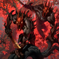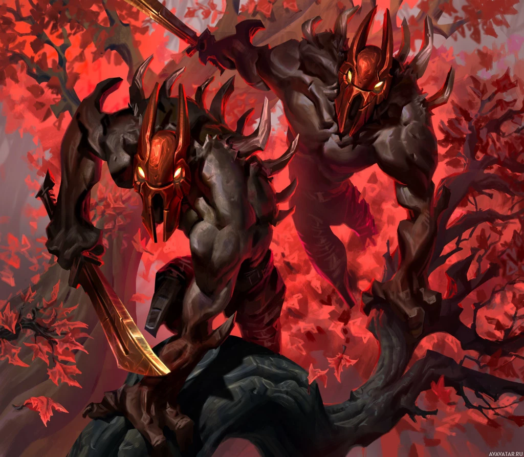 This is an image from the game Dota 2, featuring three of its characters. They are depicted as fantasy creatures with menacing features such as