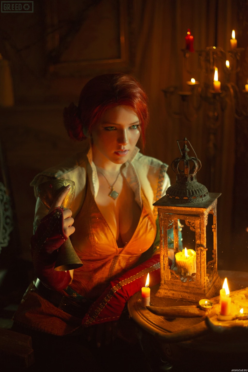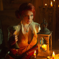 In the image, there is a person dressed as Triss Merigold from "The Witcher"