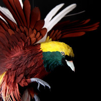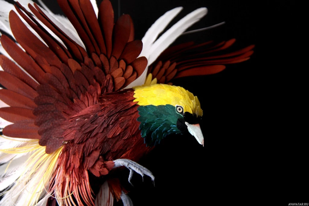 На картинке изображен красочный попугай. Он имеет ярко-красные и желтые перья с черными акцентами, которые характерны для некоторых видов ара. Попугаи известны своим ярким оперением и сильными изогнутыми клювами, приспособленными для растрескивания орехов. Этот, кажется, хорошо ухаживает за домашним животным из-за аккуратного внешнего вида его перьев.