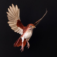 На картинке изображена птица, в частности, ястреб, захваченный в середине полета с широко расставленными крыльями. Птица кажется красной и белой по цвету. Это динамичная поза, которая предполагает движение и красоту птичьего полета.