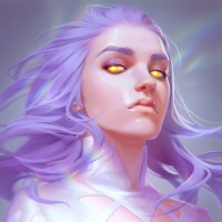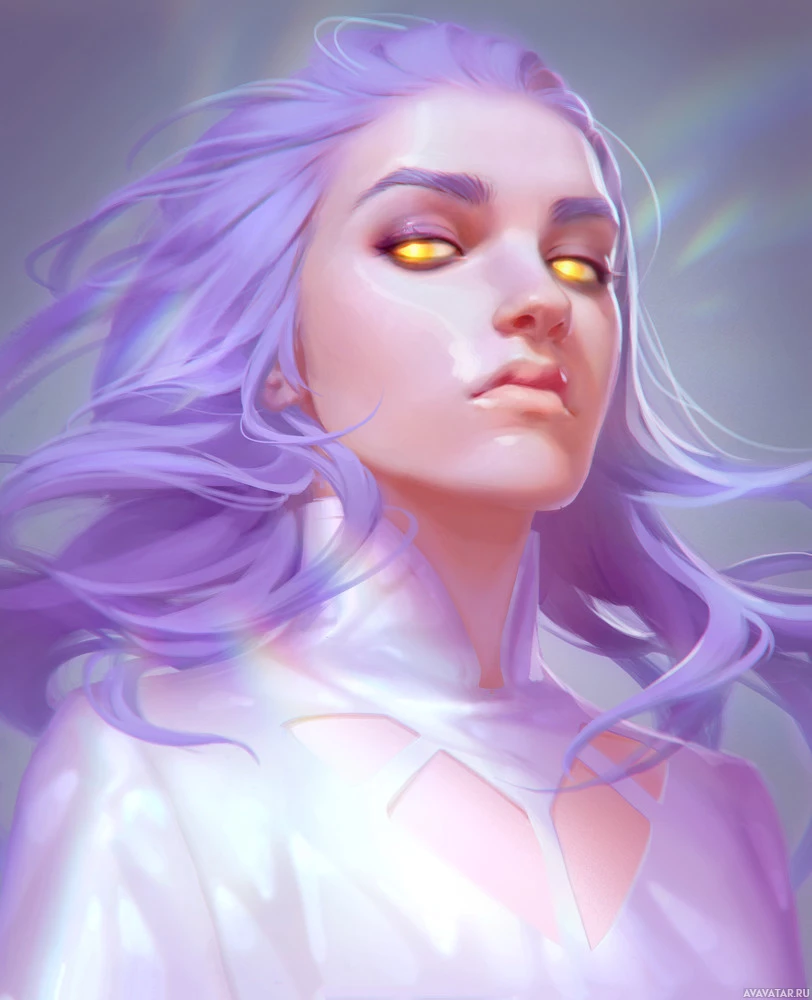 purple hair. She has striking