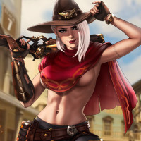 the video game Overwatch, specifically Ashe. She is a hero who has