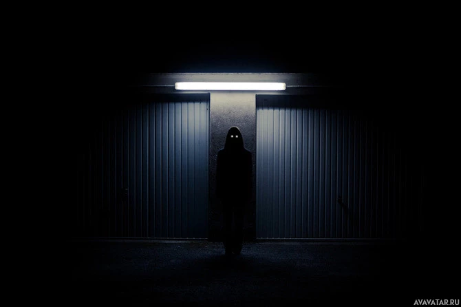 На картинке показана затемненная сцена с силуэтом фигуры, стоящей в центре, обращенной в сторону от зрителя. Освещение идет из-за фигуры, создавая драматический контраст между темным окружением и освещенным фоном. По-видимому, его принимают ночью или в тускло освещенной области. Есть также элемент таинственности из-за эффекта силуэта.