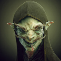 dark attire, including a cloak or hood, which adds to their ominous appearance. The character's design seems to be heavily influenced by horror or dark fantasy themes.