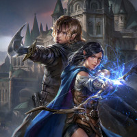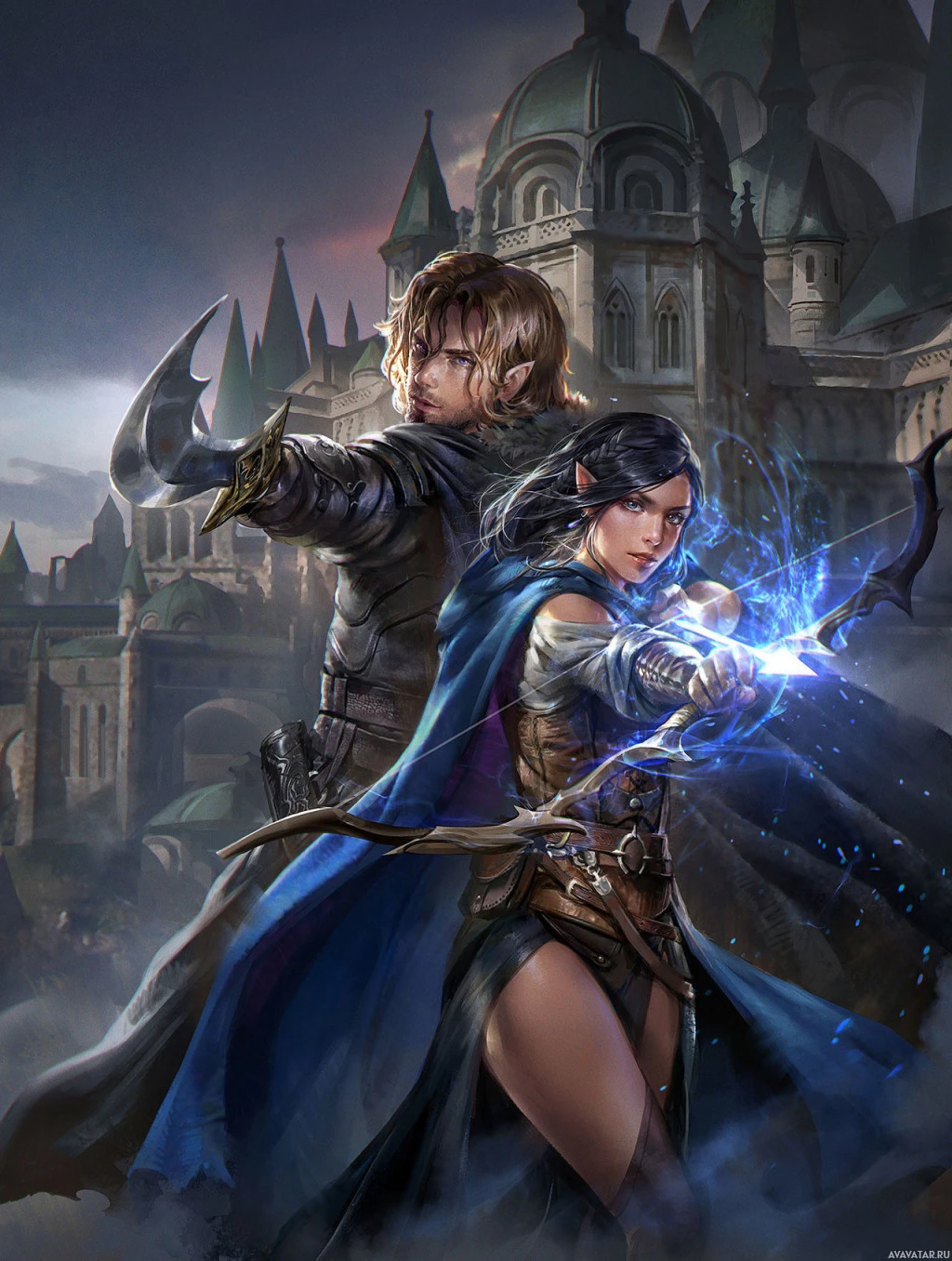 The image depicts two characters from the fantasy genre, likely from