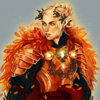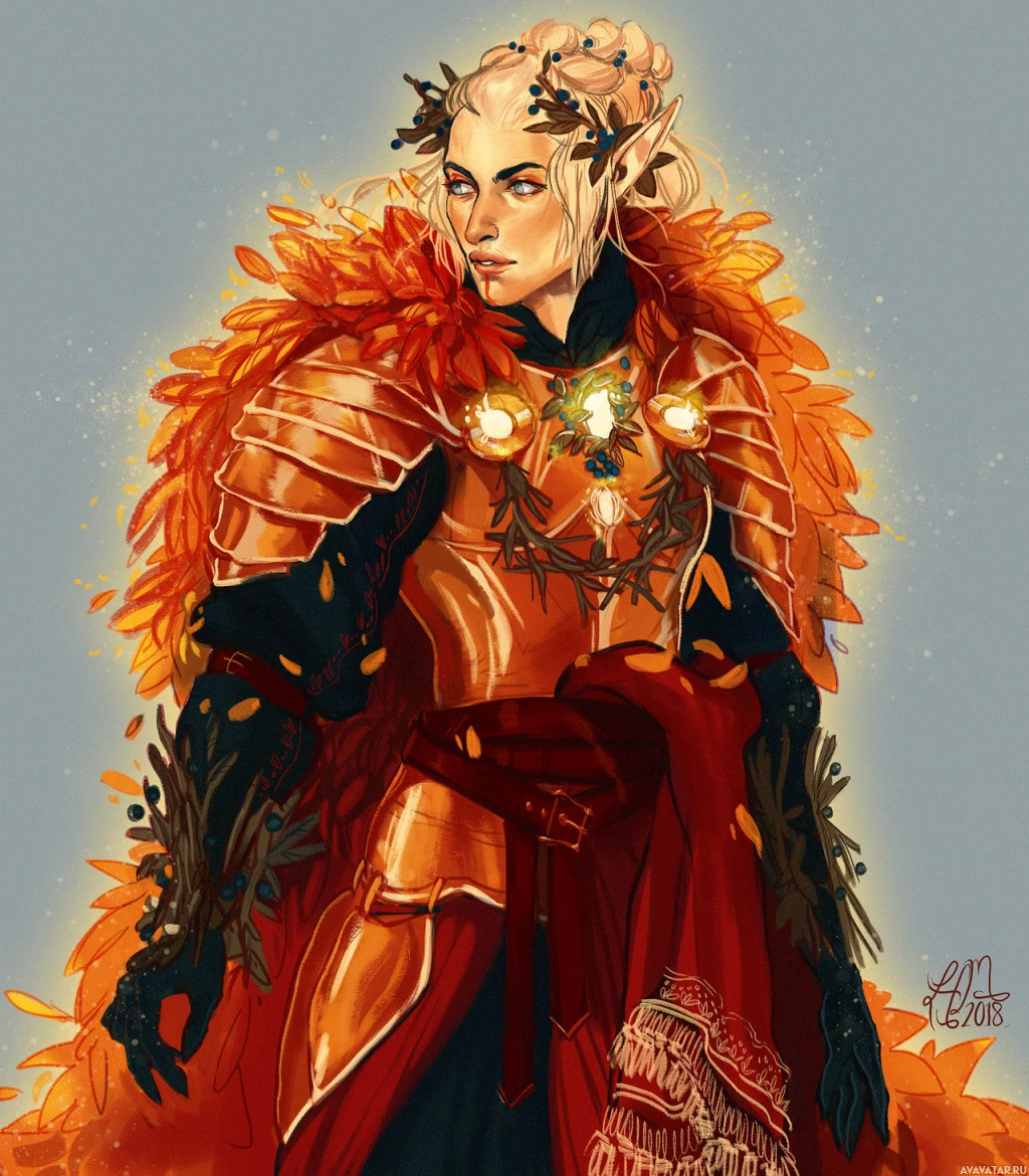 the fantasy genre, specifically designed as an elf. This character is depicted in a realistic style with vivid colors and detailed costume elements that give a sense of a well-crafted armor or outfit, possibly inspired by a specific