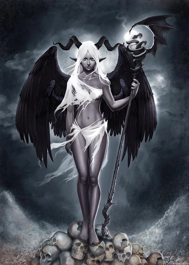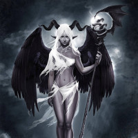 a fantasy character, which appears to be an angelic or demonic figure. This figure has