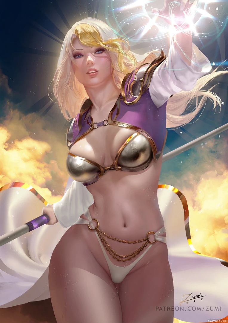 blonde hair and confident pose give her an imposing appearance, fitting for a character that may be involved in combat or adventure.