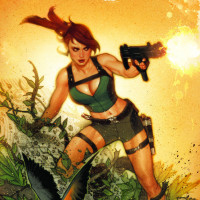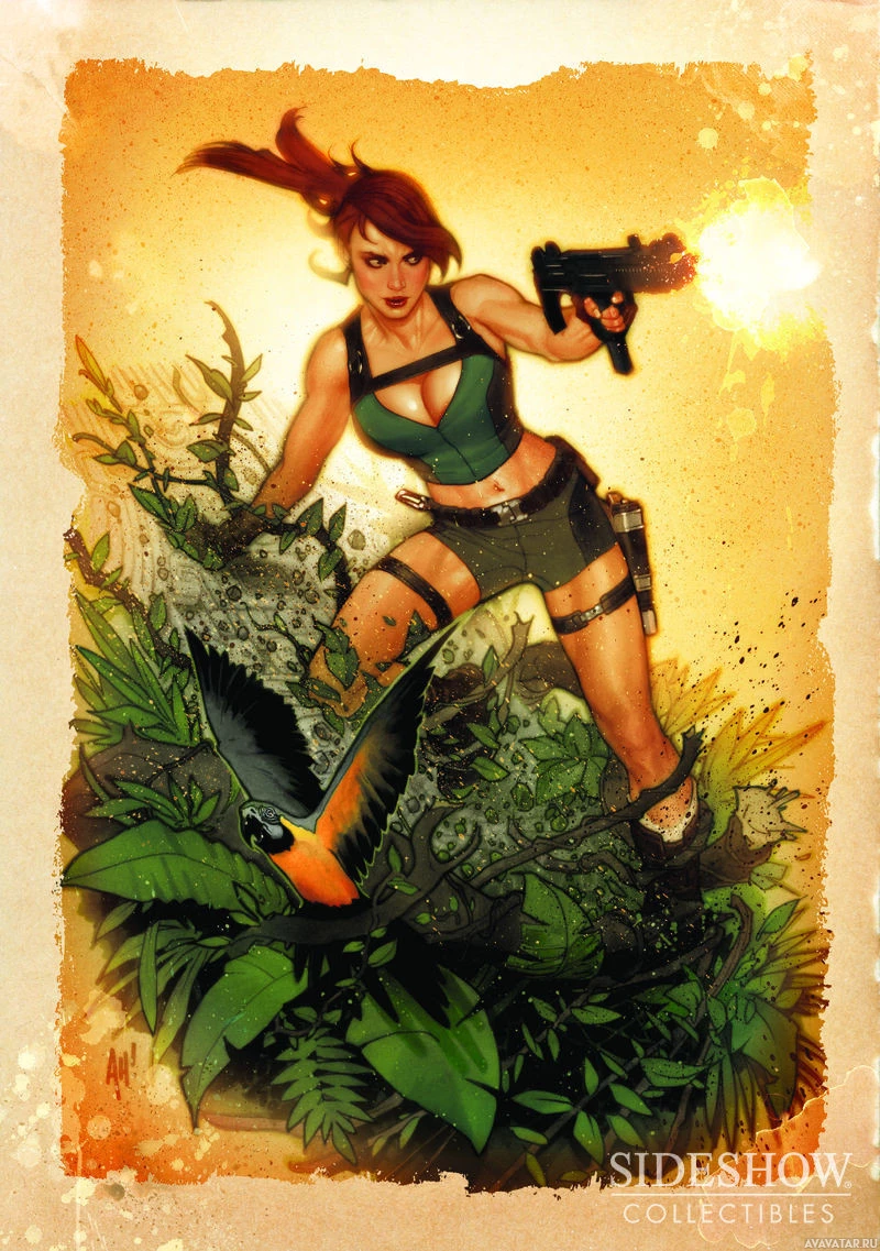 The image depicts a character named Lara Croft, who is the protagonist of the "Tomb Raider"
