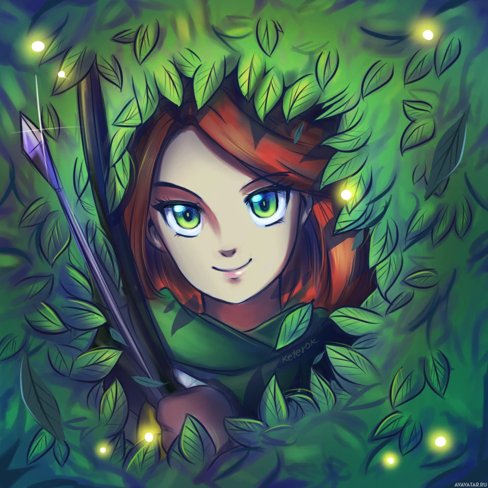 an animated character who appears to be Windranger from the game Dota 2. She is wearing a green outfit and holding a bow, which are iconic elements of her