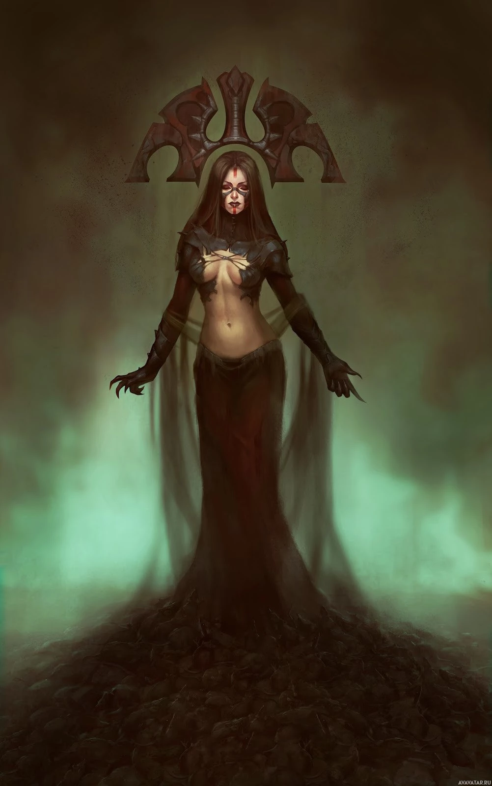 created character who appears to be a dark or evil entity. This character is depicted with pale skin and