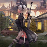real people and seems to be created for illustrative purposes related to the game "Nier: Automata."