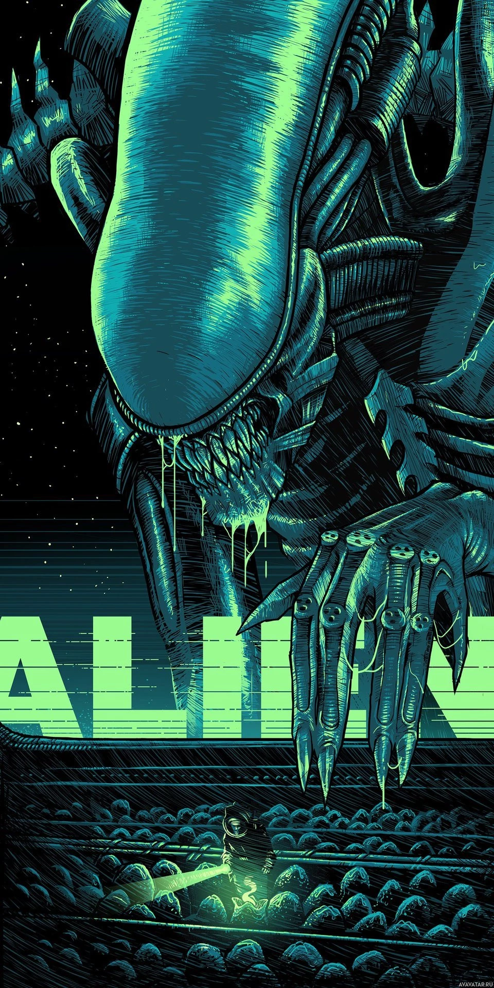 This image is a graphic poster for the movie "Aliens," which is part of the "Alien" science fiction