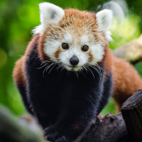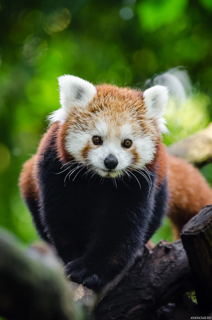 На картинке изображена красная панда, которая является небольшим млекопитающим, известным своим красновато-коричневым мехом с белыми отметинами лица. Он имеет длинный лохматый хвост и, кажется, сидит на ветке или упавшем бревне в естественной среде обитания, возможно, в лесу. Красные панды родом из восточных Гималаев и юго-западного Китая.
