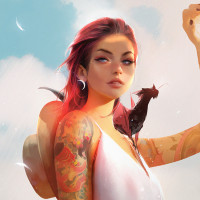 a confident expression on her face and seems to be standing in front of a bright sky with clouds. The art style suggests it could be from a digital illustration or graphic novel cover, given