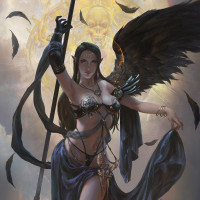 a woman with wings and what appears to be magical or mystical elements. She has