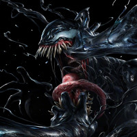 This image features an illustration of Venom, a popular comic book villain known for being the symbiotic costume worn by