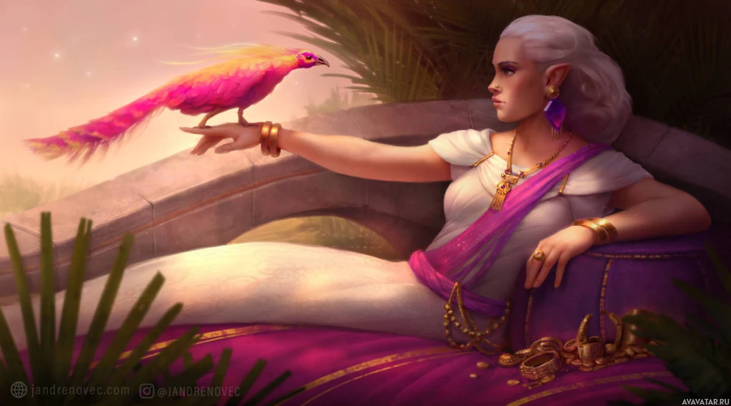 a moment of connection between the elf and the bird, evoking a sense of wonder and enchantment characteristic of fantasy artwork.